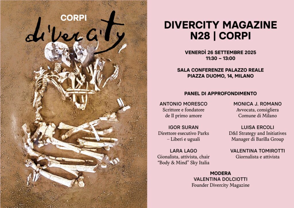 Il 26 settembre 2025, presenteremo il nuovo numero di DiverCity dal titolo Corpi. L’evento si terrà dalle ore 11:30 alle ore 13:00, presso la Sala Conferenze di Palazzo Reale, Piazza Duomo, 14, Milano (MI).