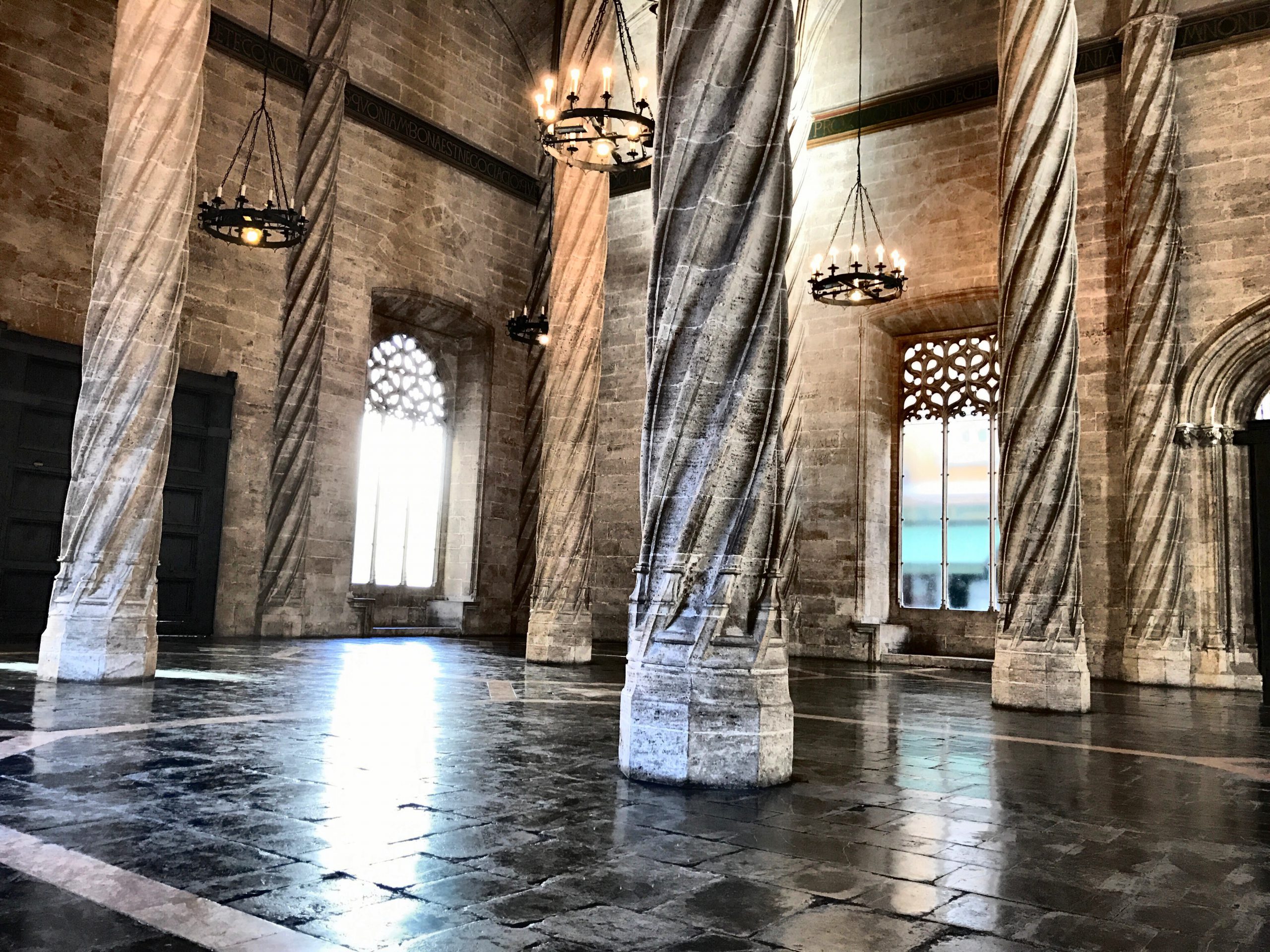 Lasciata la piazza, siamo arrivati alla Lonja de la Seda, edificio centrale dell’itinerario della via della seta, filato pregiato in questa città, utilizzato fin dai tempi antichi per confezionare gli abiti tradizionali. Il mercato della seta è l’edificio che ospitava il commercio di Valencia, il fulcro. Oggi ben conservato rappresenta un meta imperdibile per conoscere la storia della città. Formato da quattro parti: la torre, dove erano rinchiusi i ladri di seta, i mercanti e commercianti poco onesti fino all’arrivo delle autorità, la sala del Consolato del Mare, il “Patio de los Naranjos” (il giardino) e il Salone delle Colonne, la sala dove erano stipulati i contratti. [Questo museo è completamente accessibile grazie ad un montascale e alla presenza di bagni per handicap].